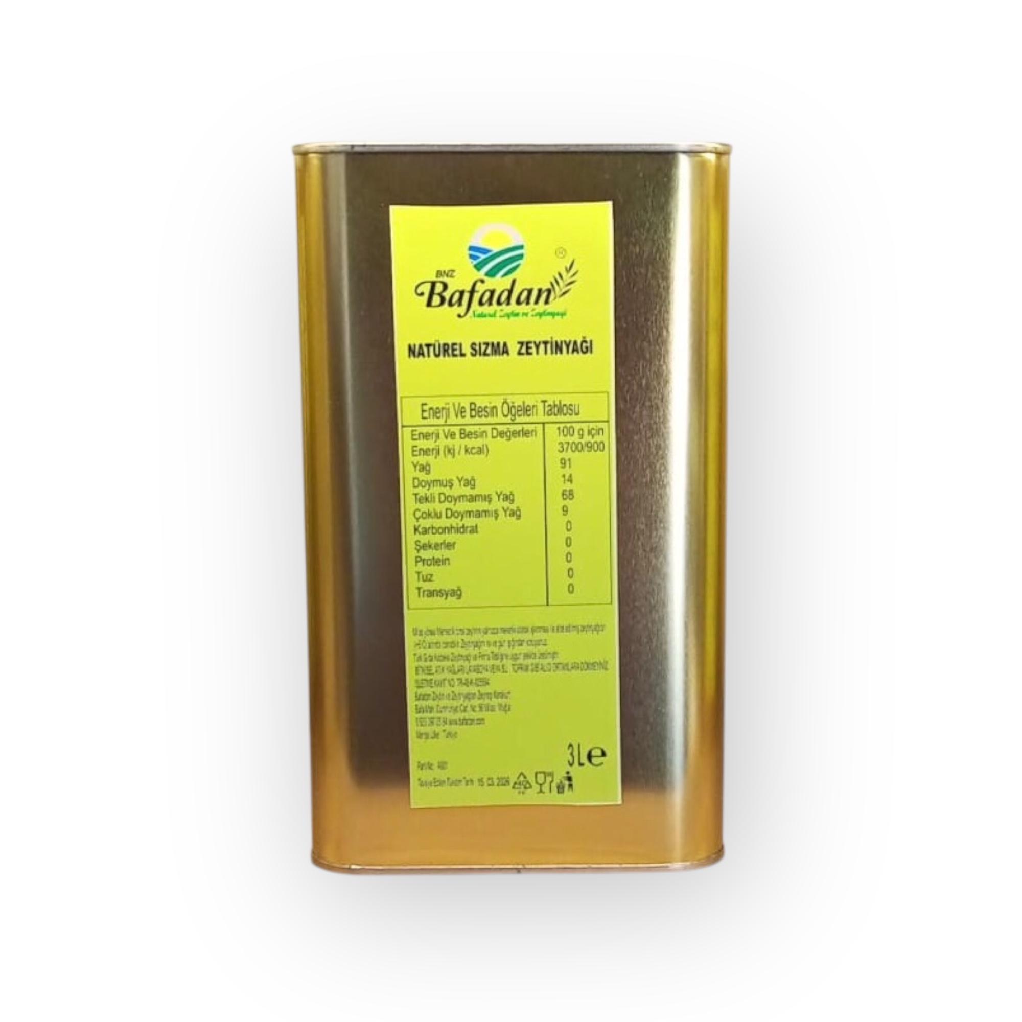 BNZ BAFADAN Natürel Sızma Zeytinyağı, 1845 yılından bu yana ailemize ait olan topraklardaki zeytinlerden soğuk sıkım (≤27°C) yöntemiyle elde edilir. Asit oranı %0,8’in altındadır, bu da üstün kalite ve düşük asitlik göstergesidir. Zeytinyağımız, hafif meyvemsi tadı, taze yeşil kokusu ve berrak altın sarısı rengiyle özellikle çiğ tüketim (salatalar, kahvaltılar, soslar) için idealdir. Hiçbir katkı ve koruyucu madde içermez, filtresiz ve %100 doğaldır.