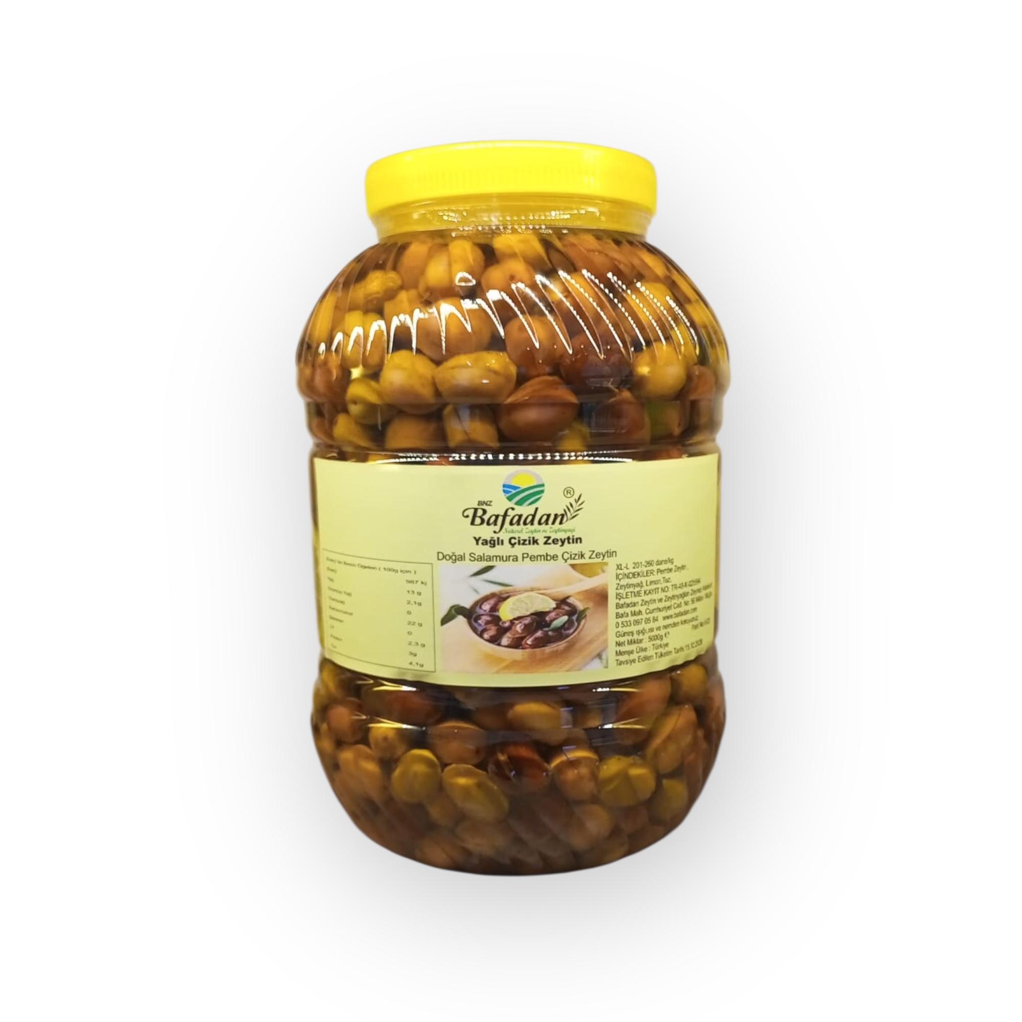 BNZ BAFADAN Bafa Yöresi Kahvaltılık Zeytin, geleneksel el çizmesi yöntemiyle hazırlanır. Doğal fermantasyon sürecinin ardından, katkısız natürel sızma zeytinyağı içinde saklanarak lezzeti korunur, zenginliği artar.
